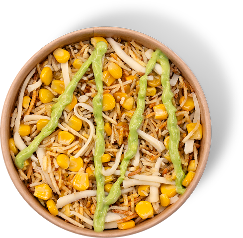 Maíz salteado, queso mozzarella, papa ripio, salsa MUY. Elige la proteína que más te guste.